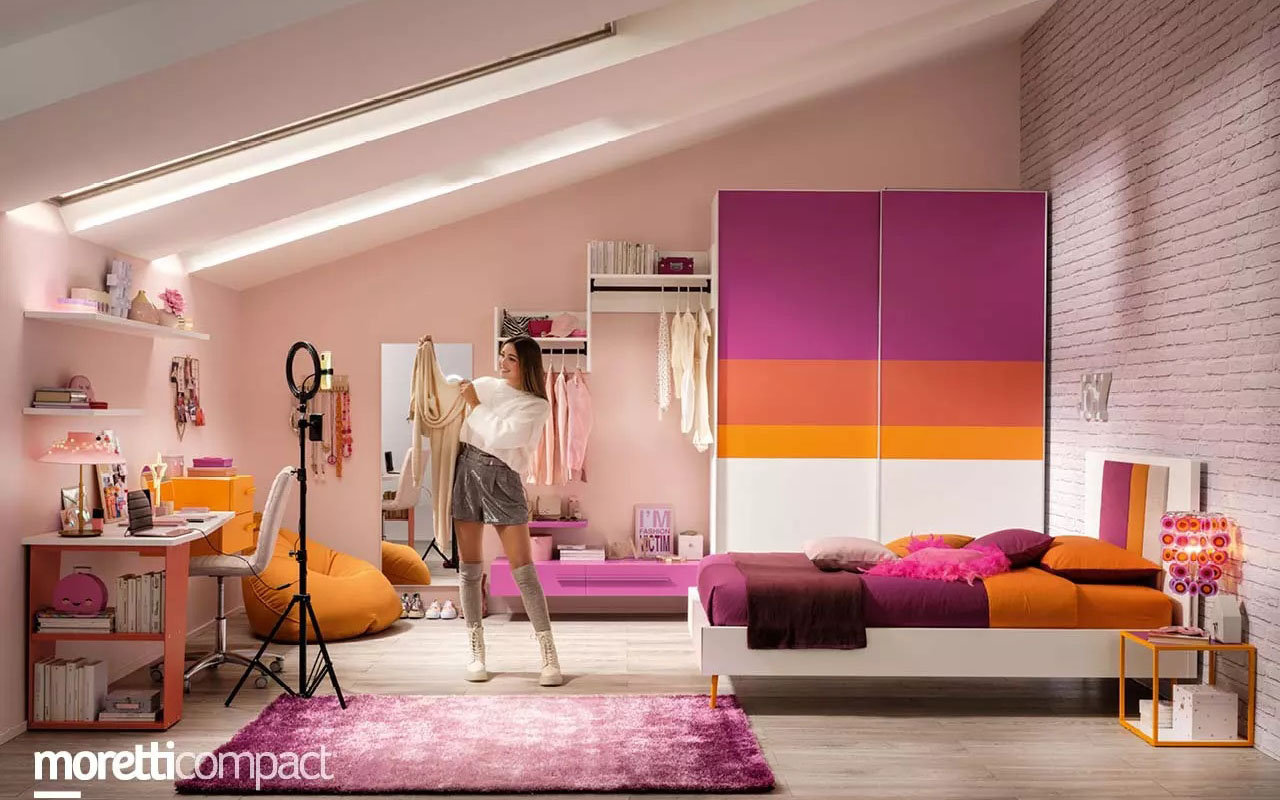 I ragazzi crescono in fretta e con loro anche l’esigenza di uno spazio personale e meglio organizzato, dove il gioco lascia il posto a nuove attività da grandi. Ogni elemento dell’arredamento per la camera dei ragazzi si trasforma. I letti diventano inevitabilmente più grandi, mentre le scrivanie devono essere più ampie e adatte ad un’attività di home office. Inoltre gli armadi devono essere necessariamente più capienti e gli spazi diversificati. L’arredamento deve intercettare e soddisfare i bisogni delle nuove generazioni, offrendo spazi funzionali, personalizzati e con finiture e materiali di qualità.